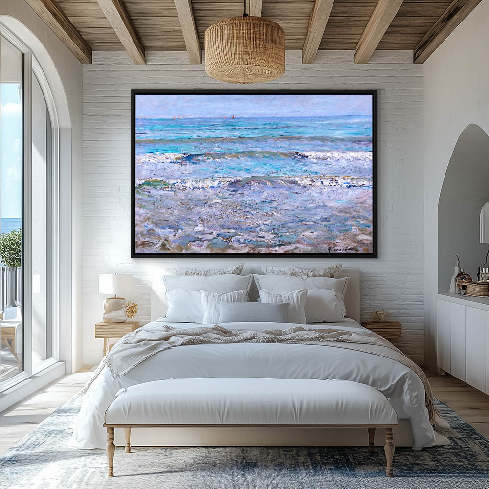 Coastal Seascape Painting with Waves and Distant Sail Boats
