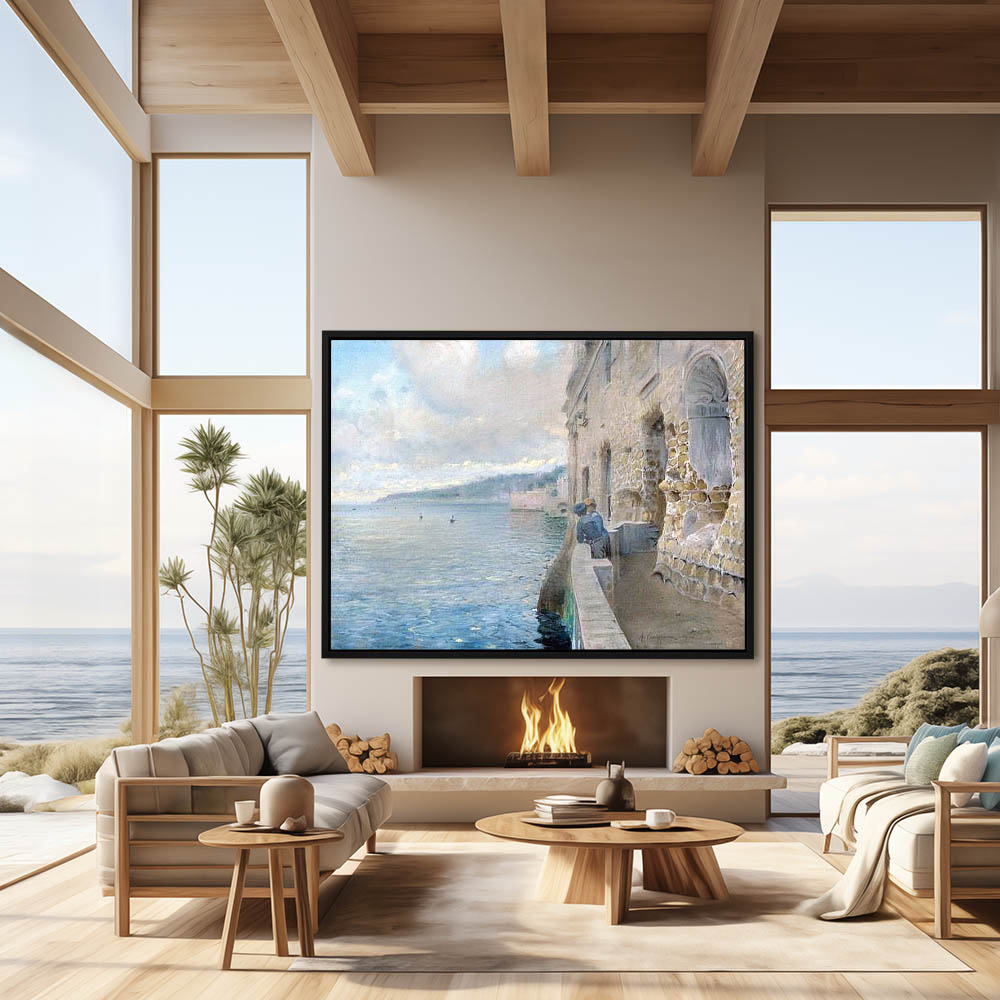 Coastal Painting with a Young Couple on a Terrace of Palazzo Don Anna