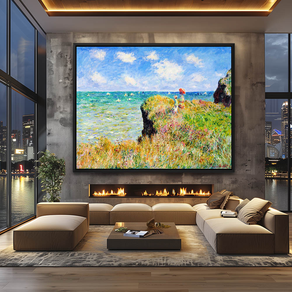 Vintage Seascape Painting with Cliffs on the Shoreline at Port d’Aval
