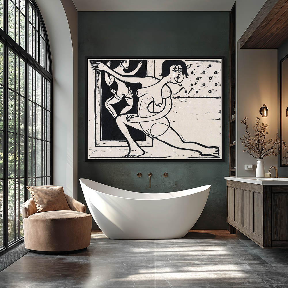 Vintage Figurative Painting with Two Nude Women