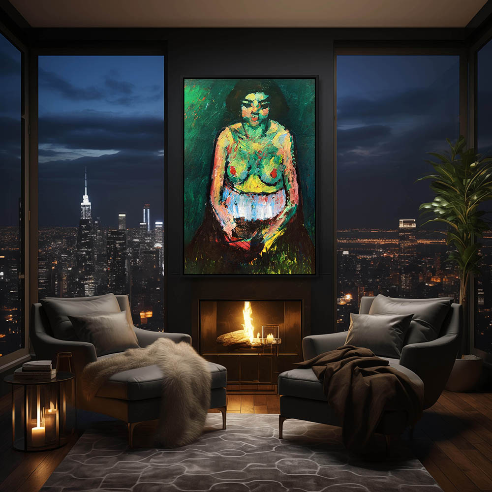 Abstract Figurative Portrait Painting of a Semi Nude Female in Green