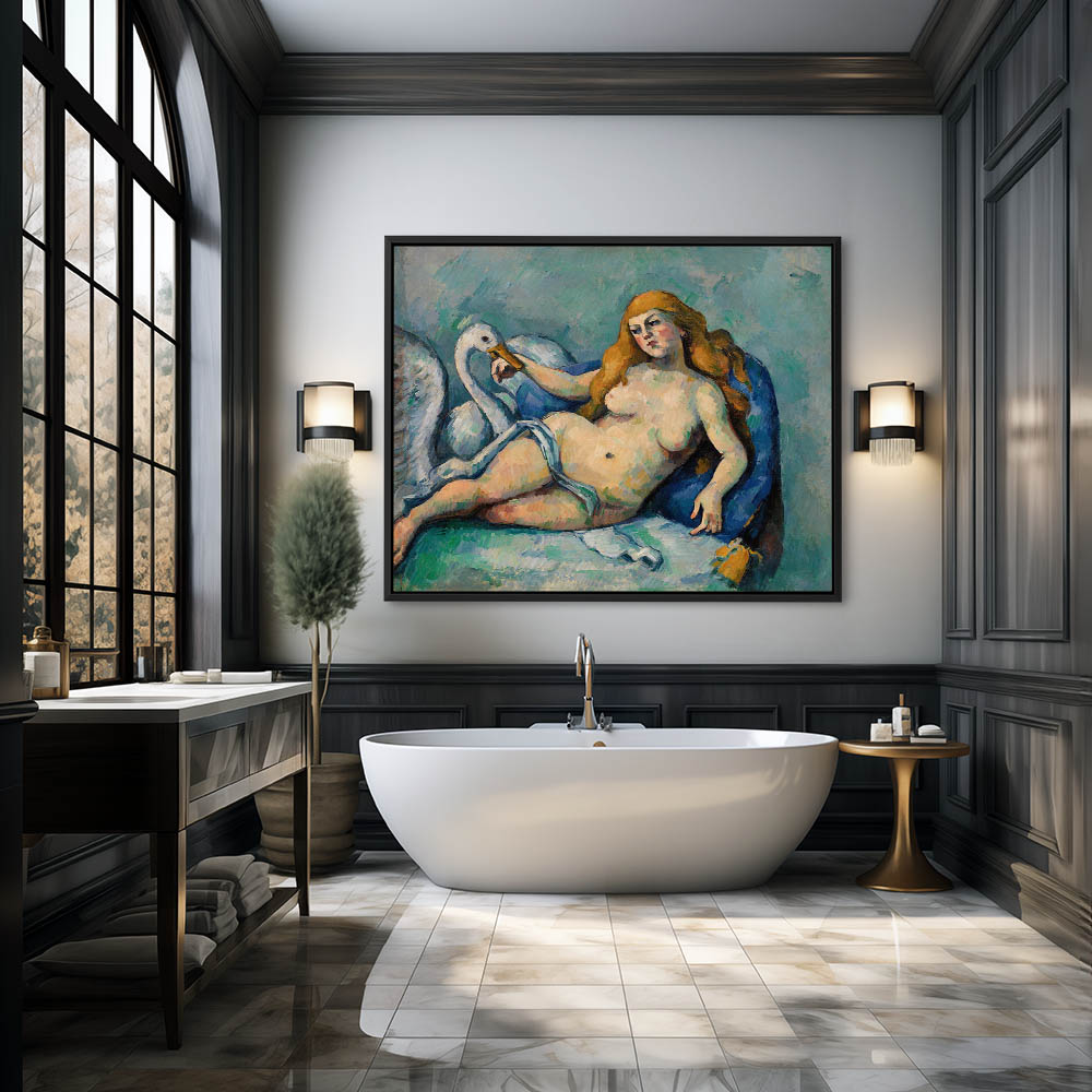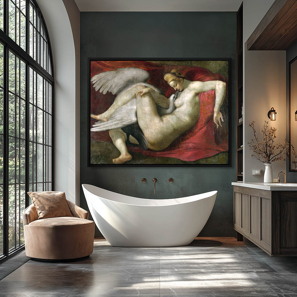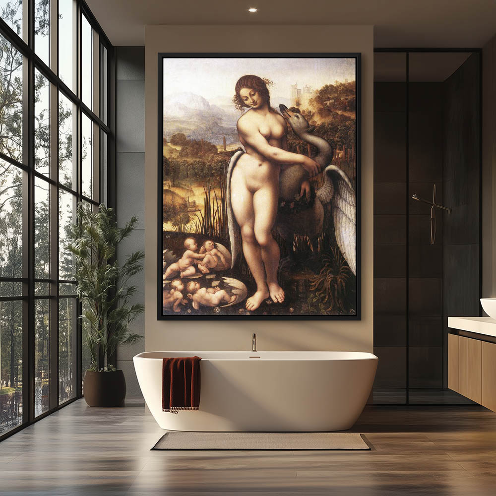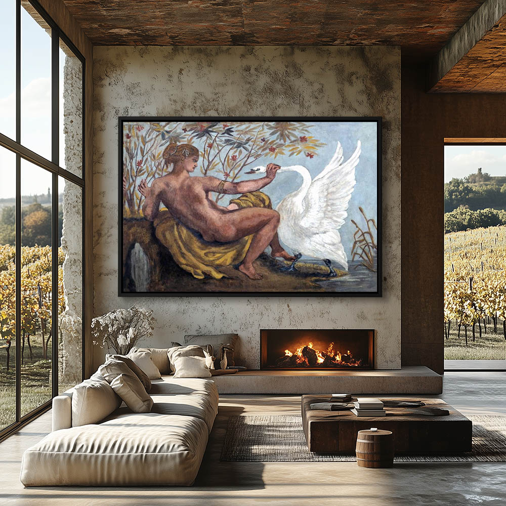 Abstract Figurative Painting of a Nude Woman with a Swan