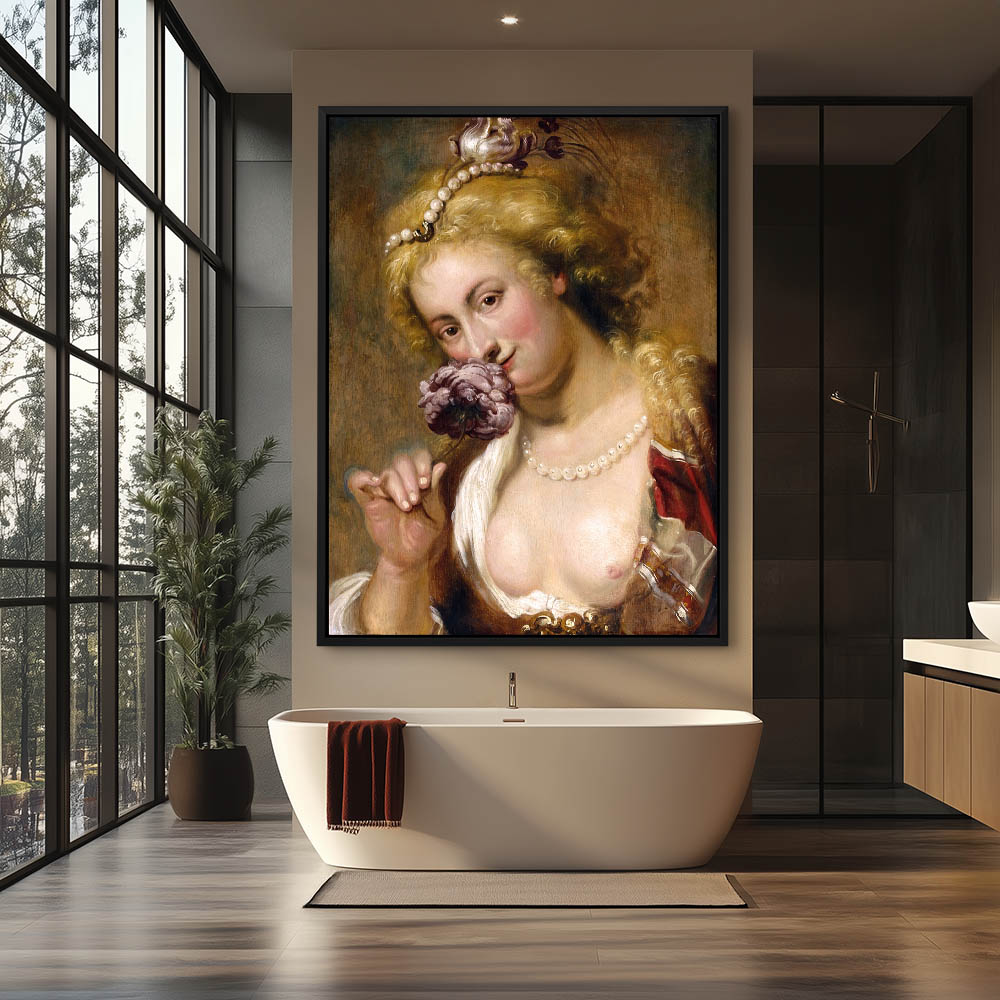 Abstract Figurative Portrait of a Half Nude Woman Sitting