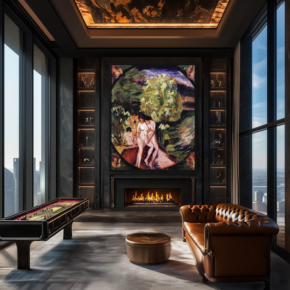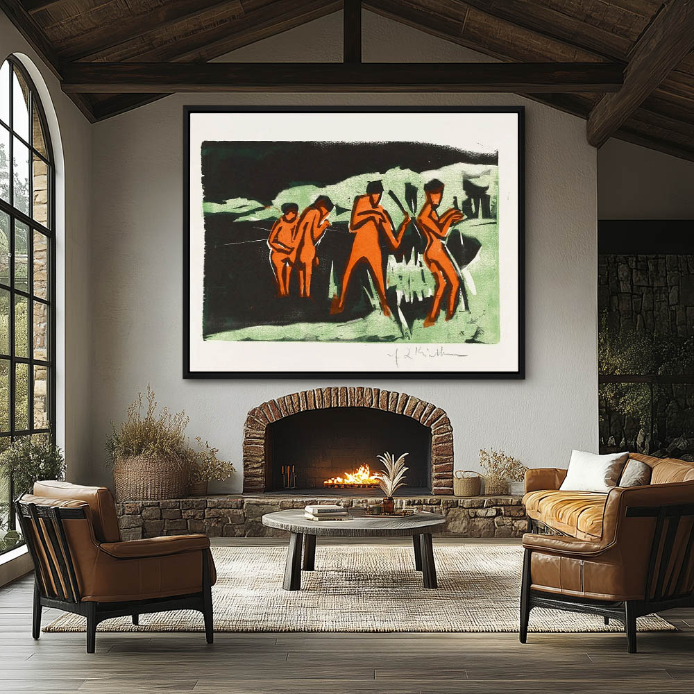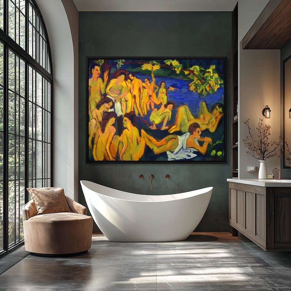Vintage Abstract Landscape Painting with Nude Bathers