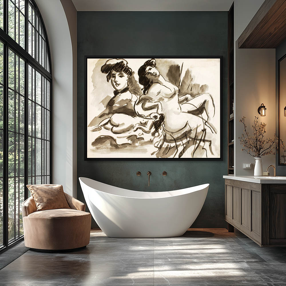 Realism Vintage Painting of a Nude Woman in Bed