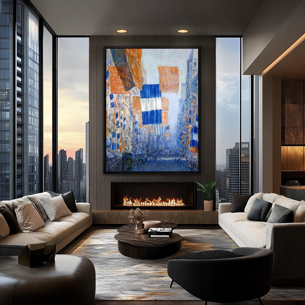 Fifth Avenue scene with flags