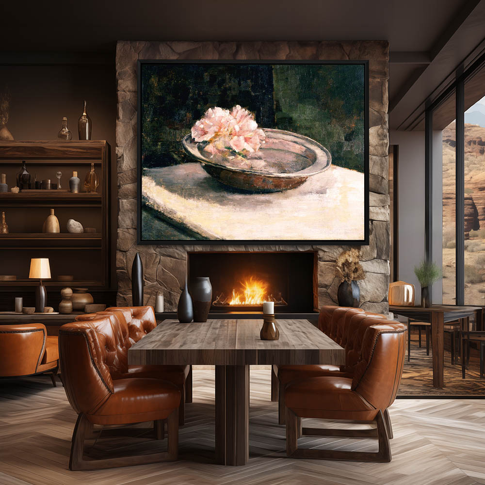 Vintage Still Life Painting with Flowers in a Bowl