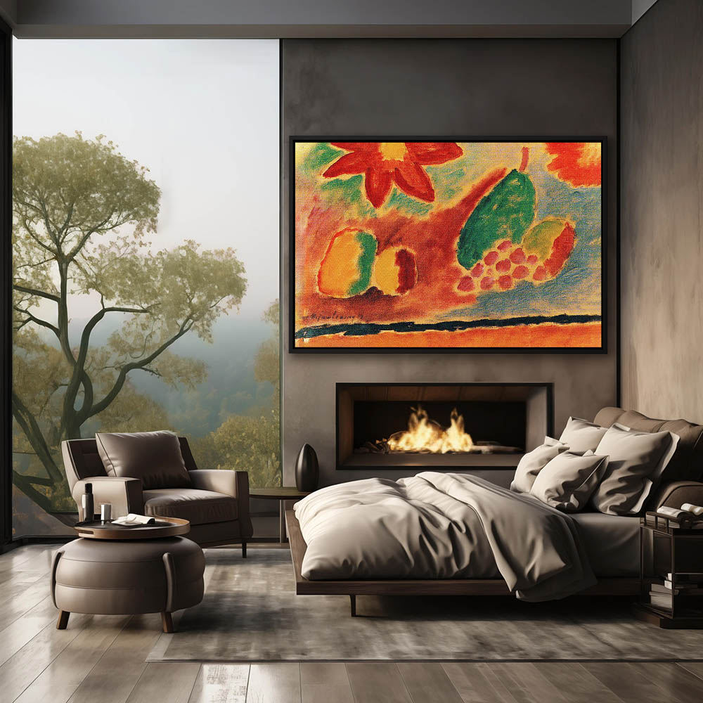 Abstract Still Life Painting with Fruit and Flowers