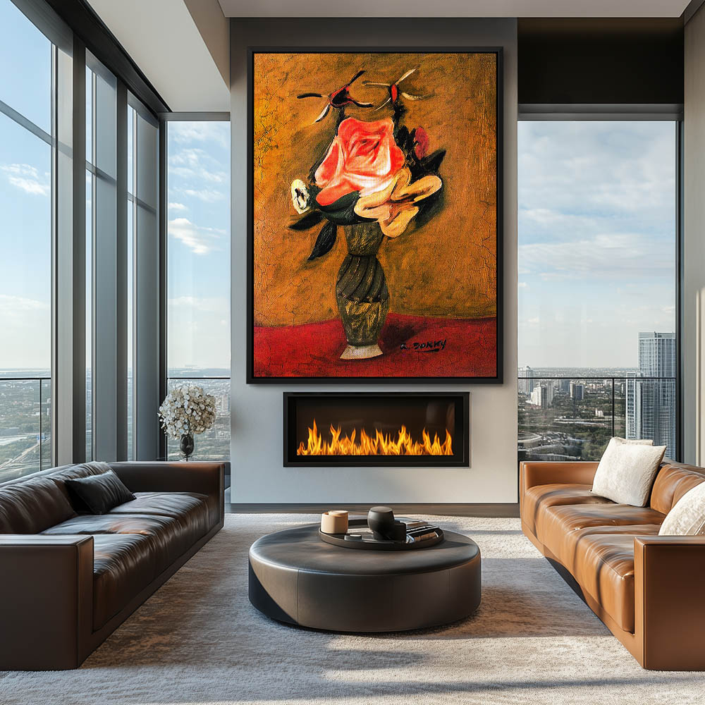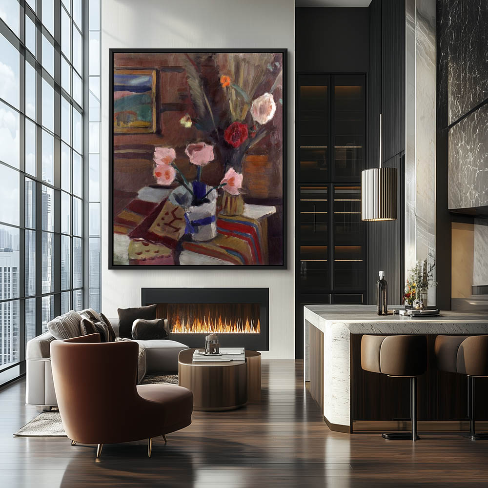 Abstract Still Life Painting with Flowers