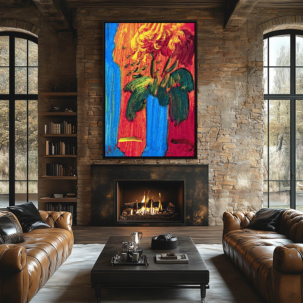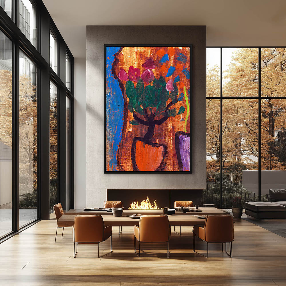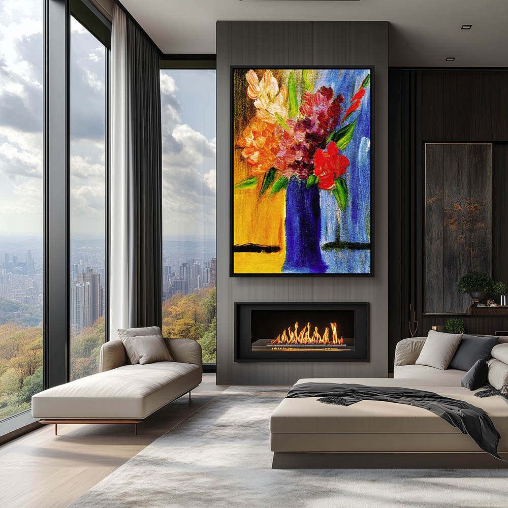 From $29.97Abstract Still Life Painting with Flowers on Blue Background