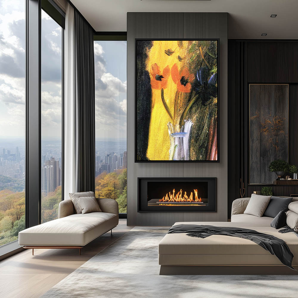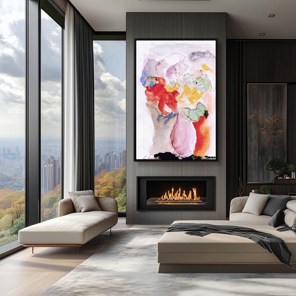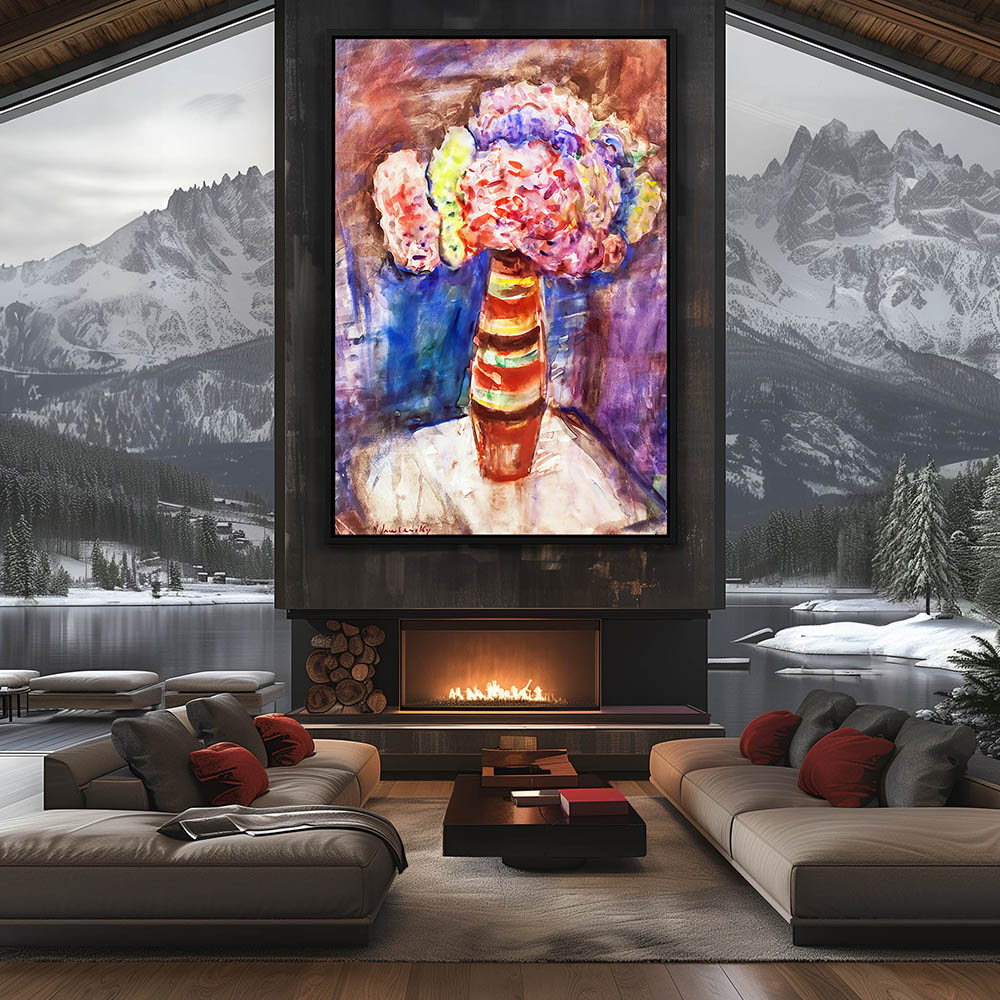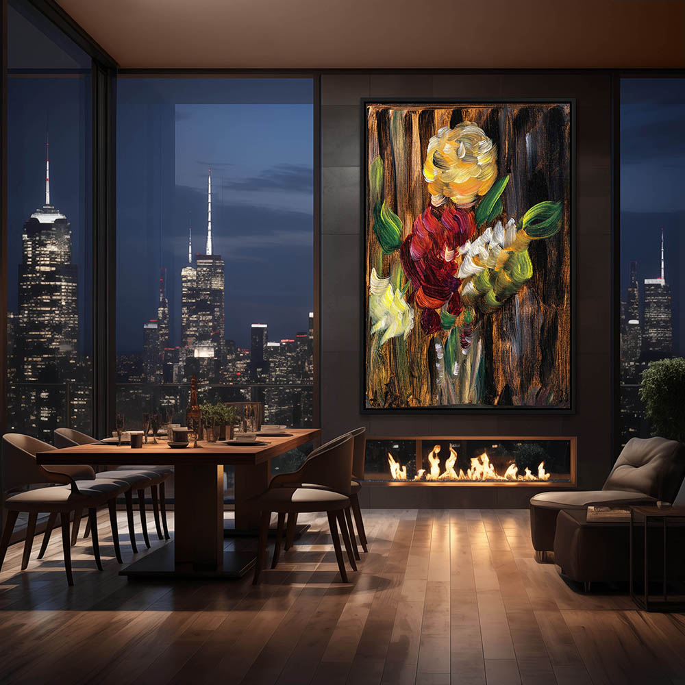 From $29.97Abstract Still Life Painting with Flowers on Blue Background