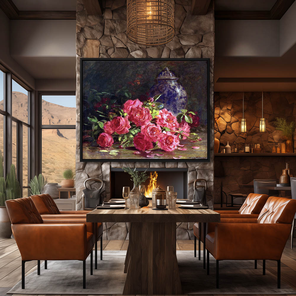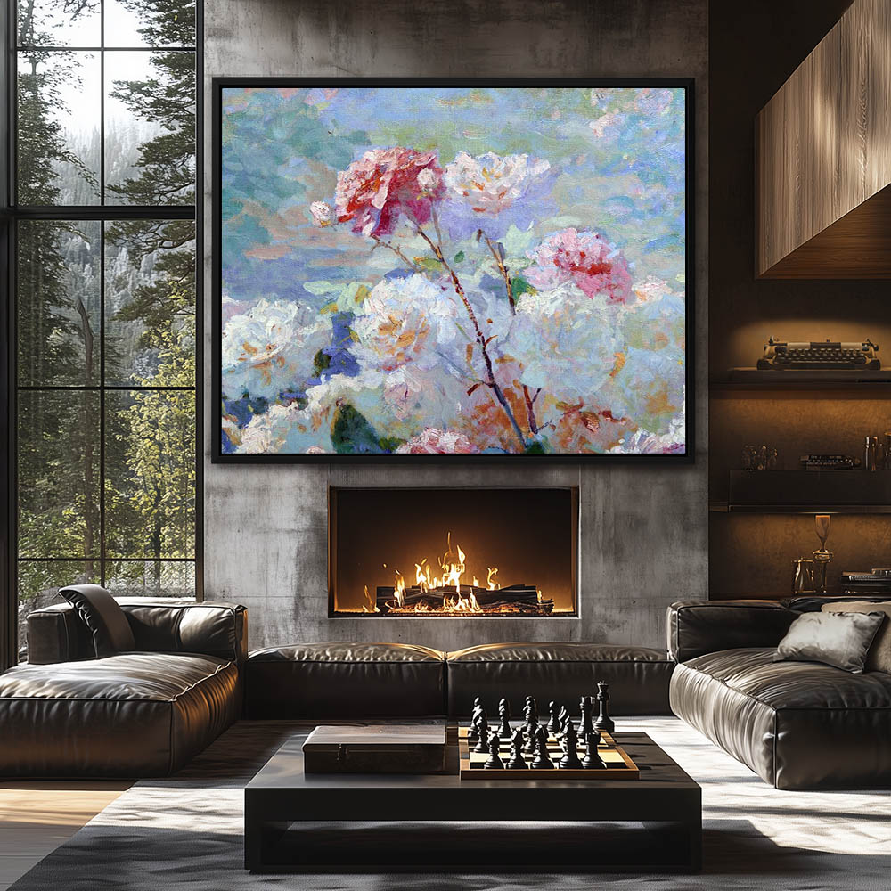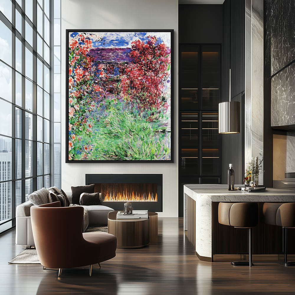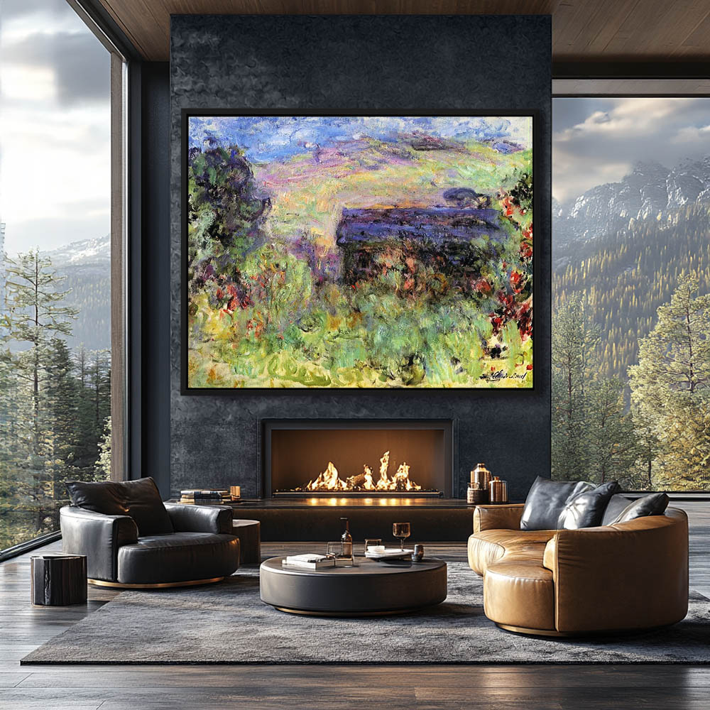 Vintage Landscape Painting of the Rose Garden in Giverny