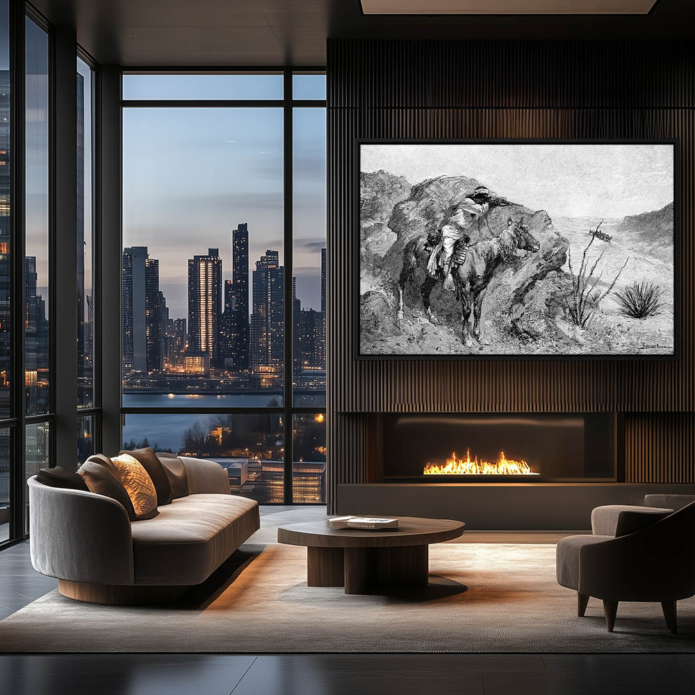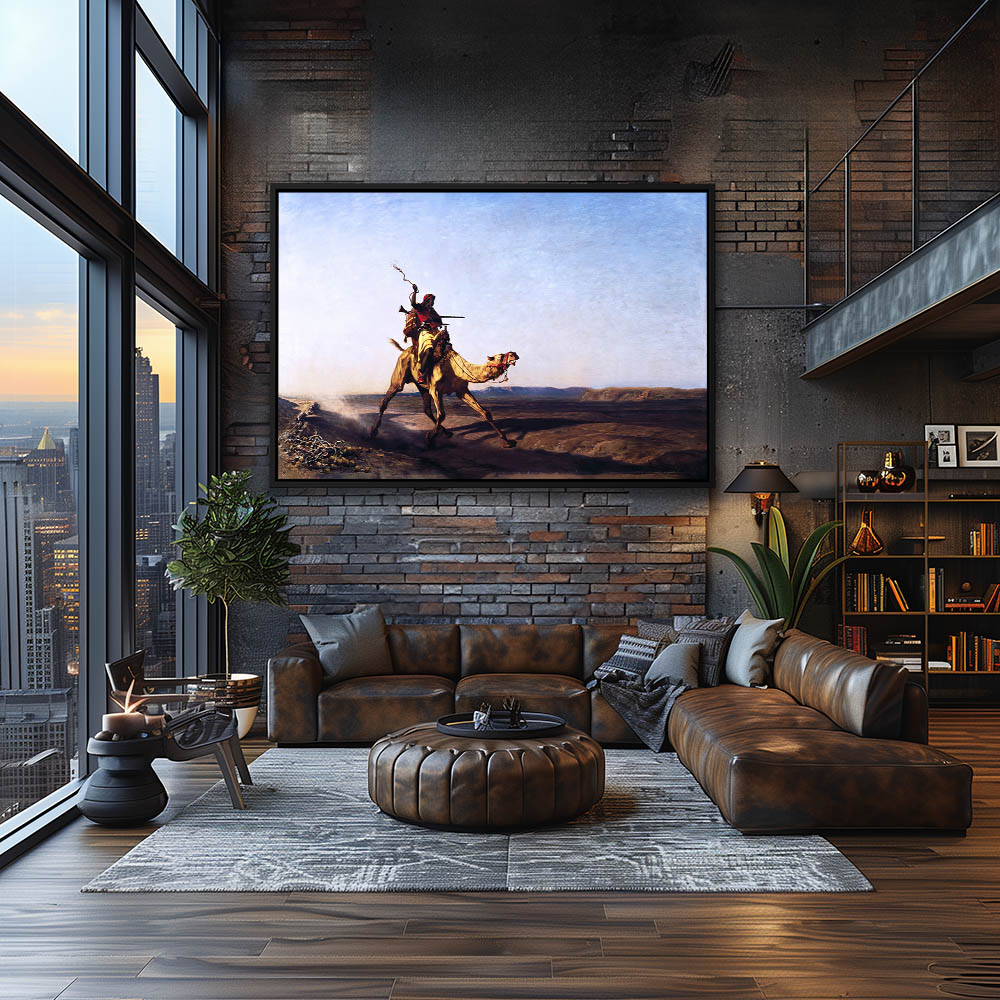 Landscape Painting with a Courier Riding a Camel Across the Desert