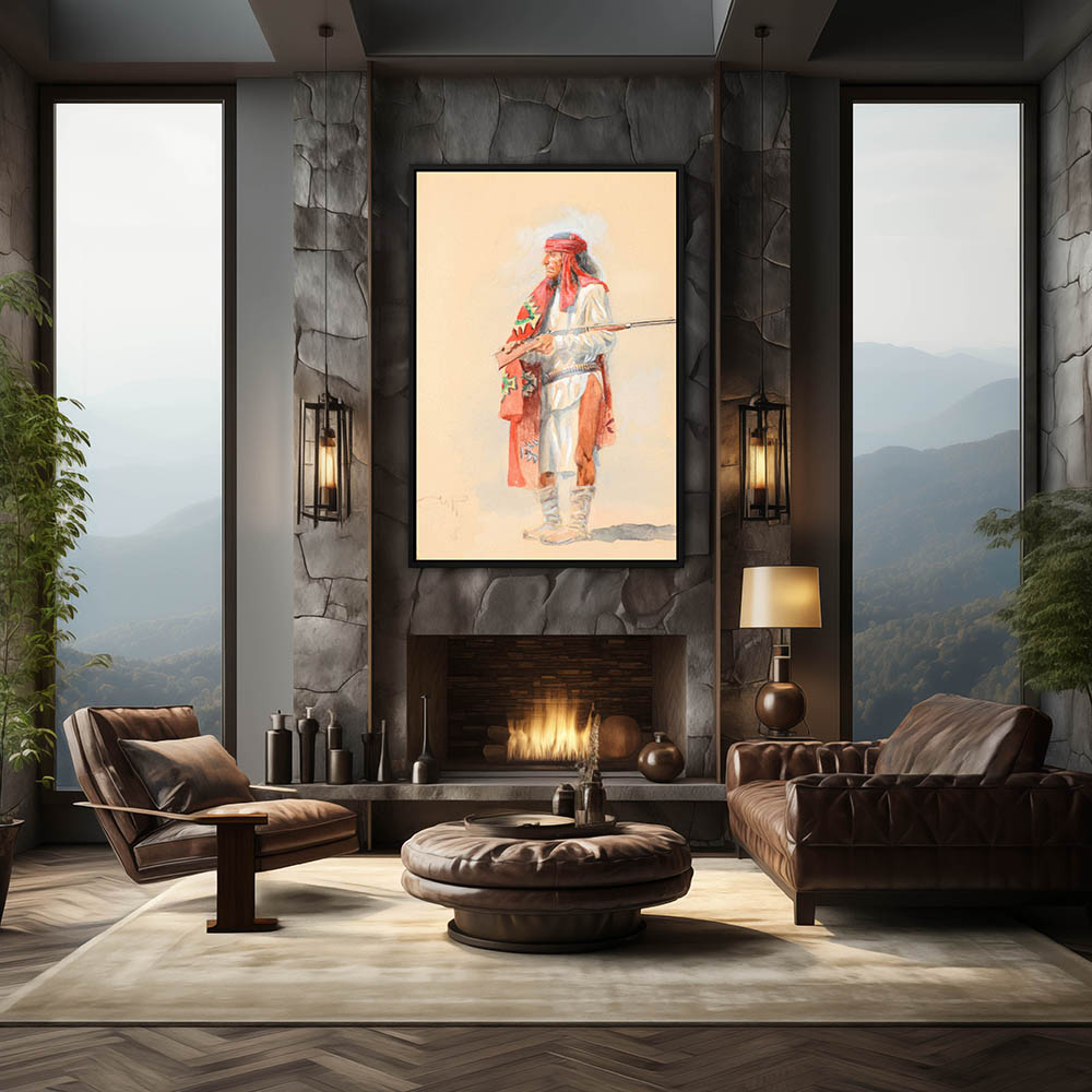 Portrait of an Apache Warrior holding a rifle
