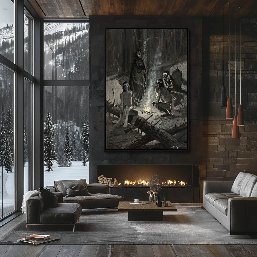 Apache Indians around Signal Fire at night