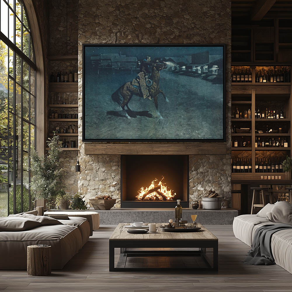 Man on a painted pony at night