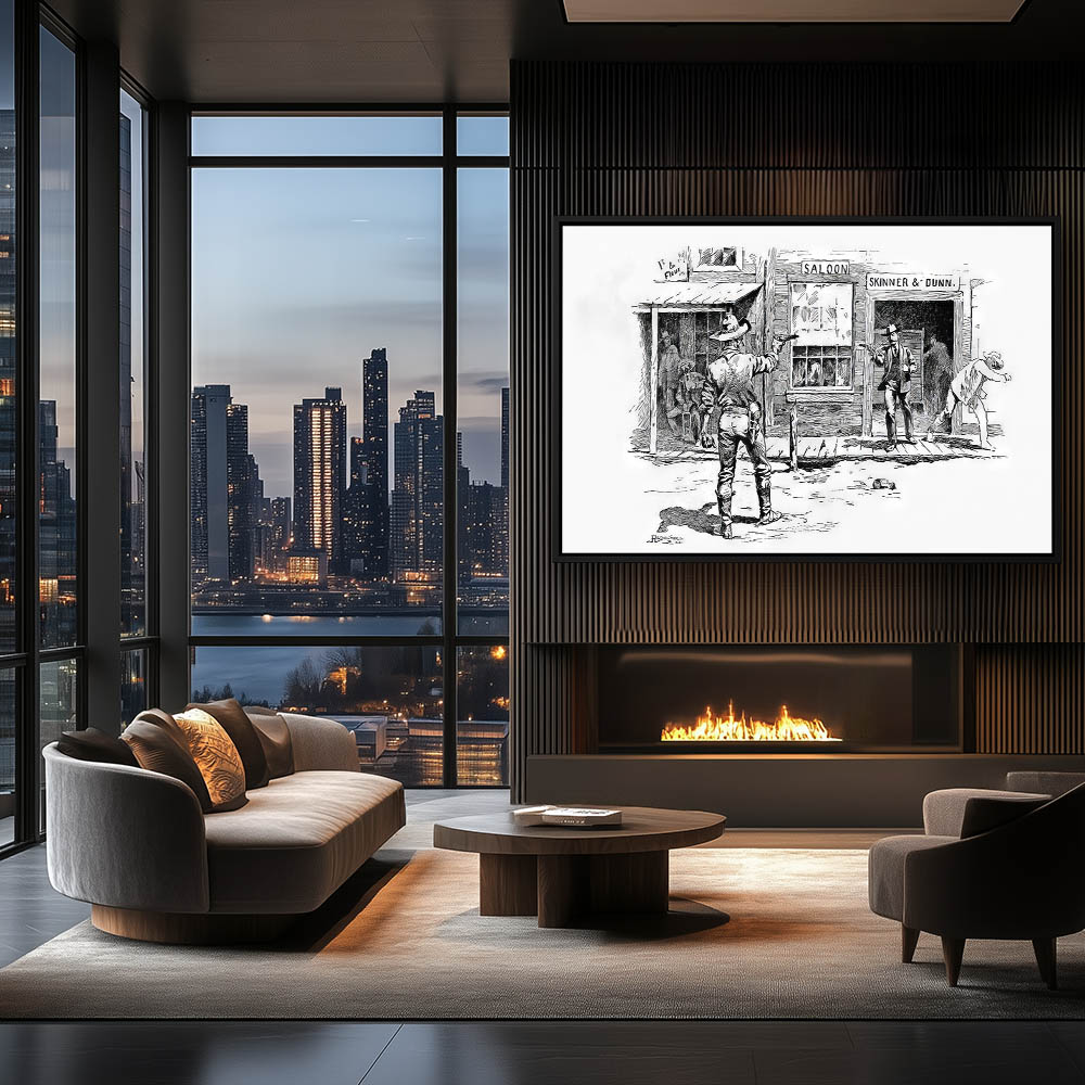 Illustration of a gunfight in the streets of the Old West