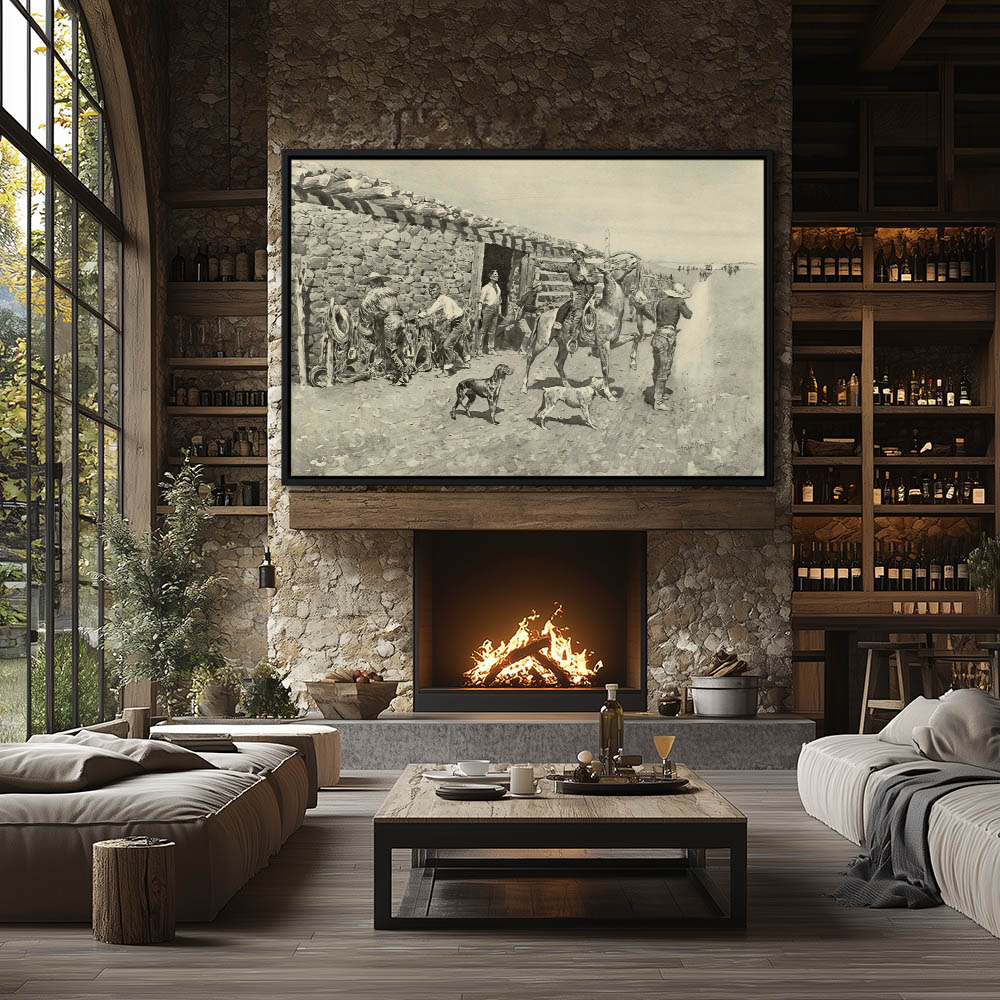 Cowboys preparing for Indians on the horizon riding in with the expected stagecoach
