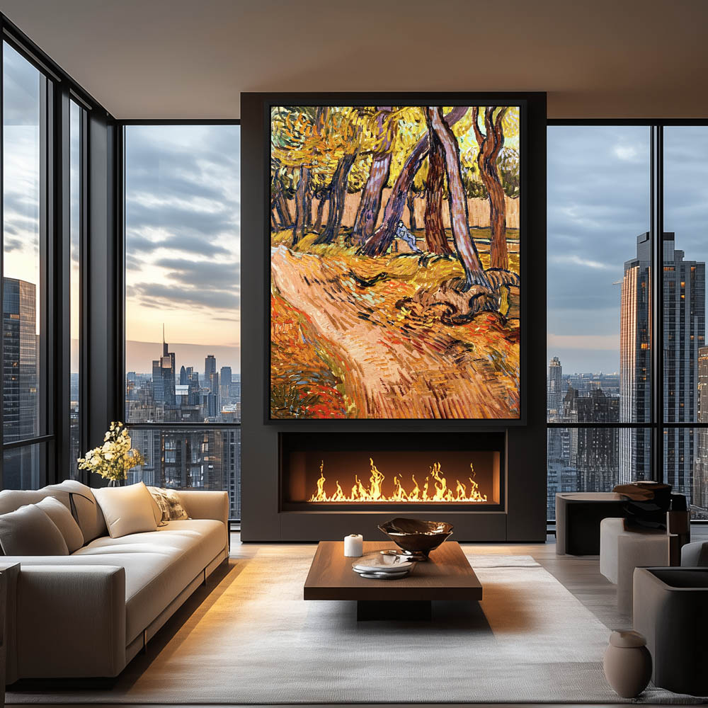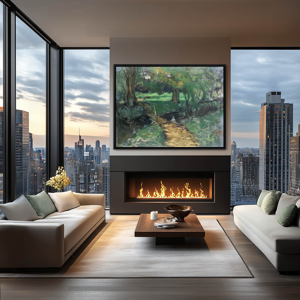 Impressionist Abstract Landscape Painting with a Figure on a Bench in the Trees