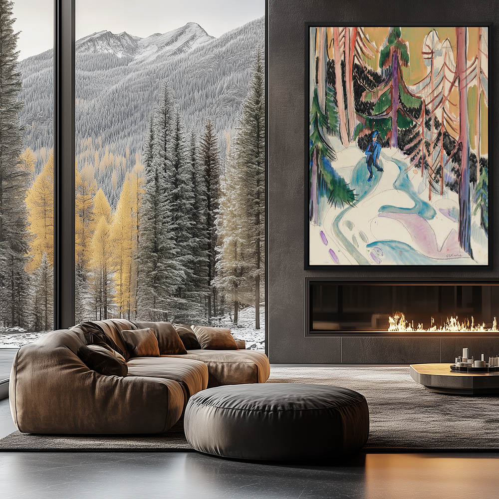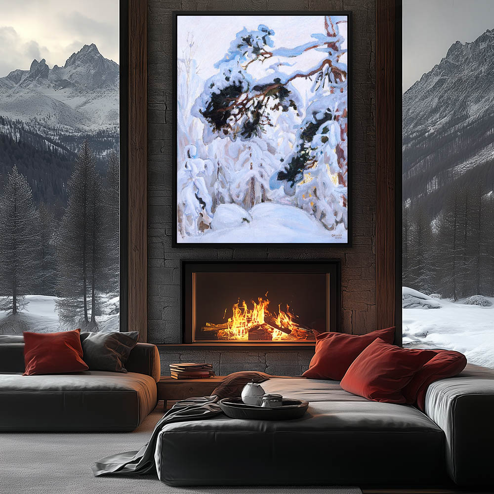 Mountain Forest Landscape Painting with Pheasants Resting on the Limbs
