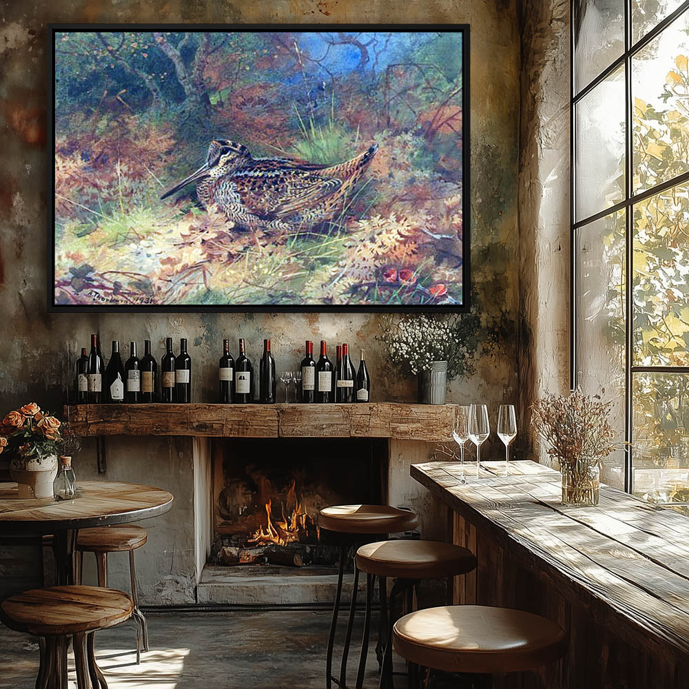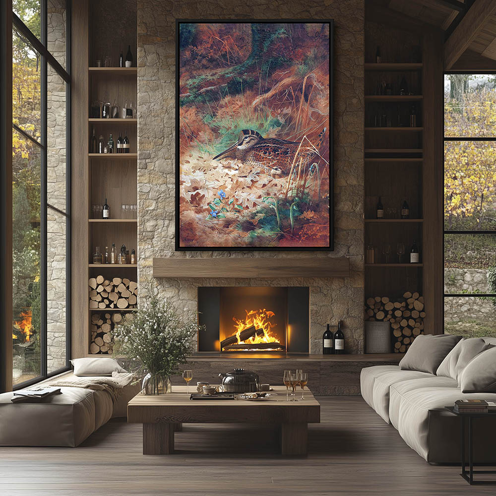 Painting of a Woodcock Resting in the Leaves of the Forest Floor