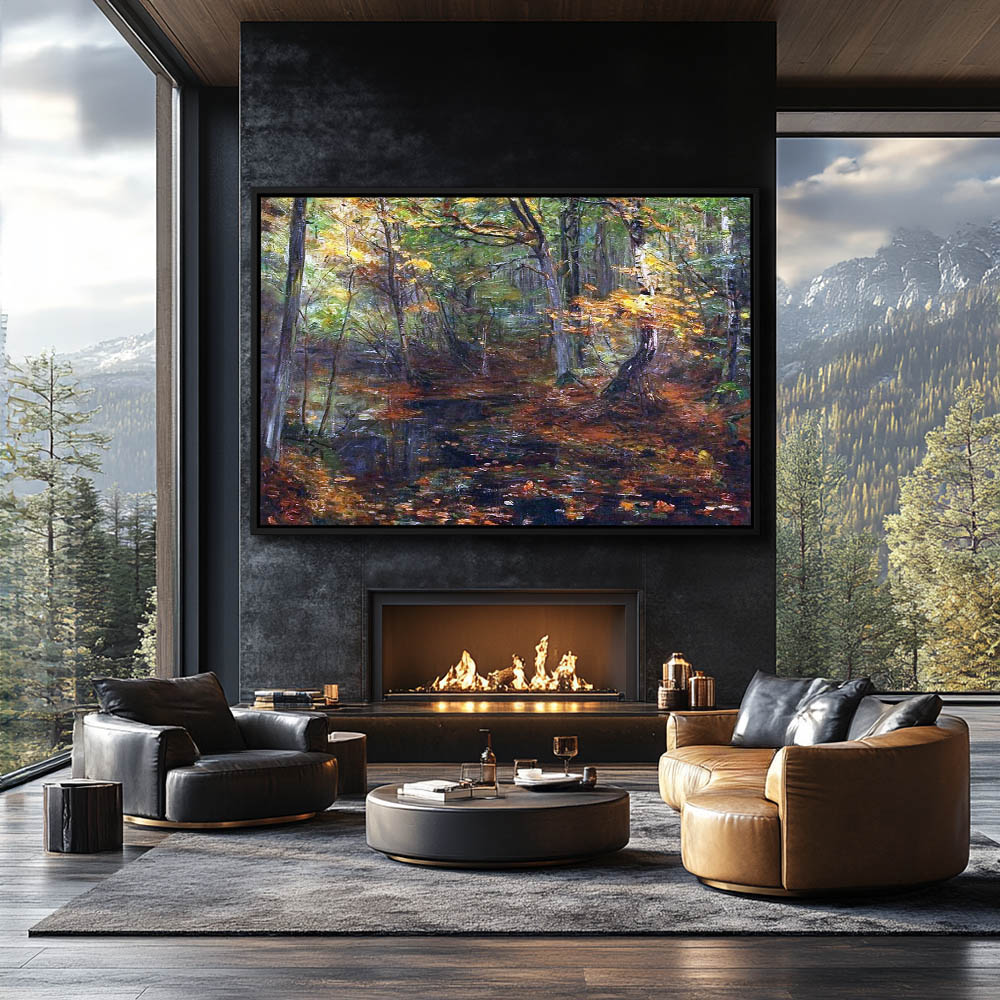Forest Landscape Painting with Trees and Stream