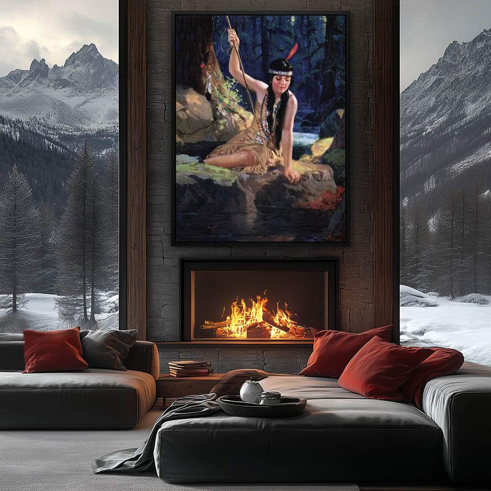 Figurative Painting of an Indian Woman Fishing