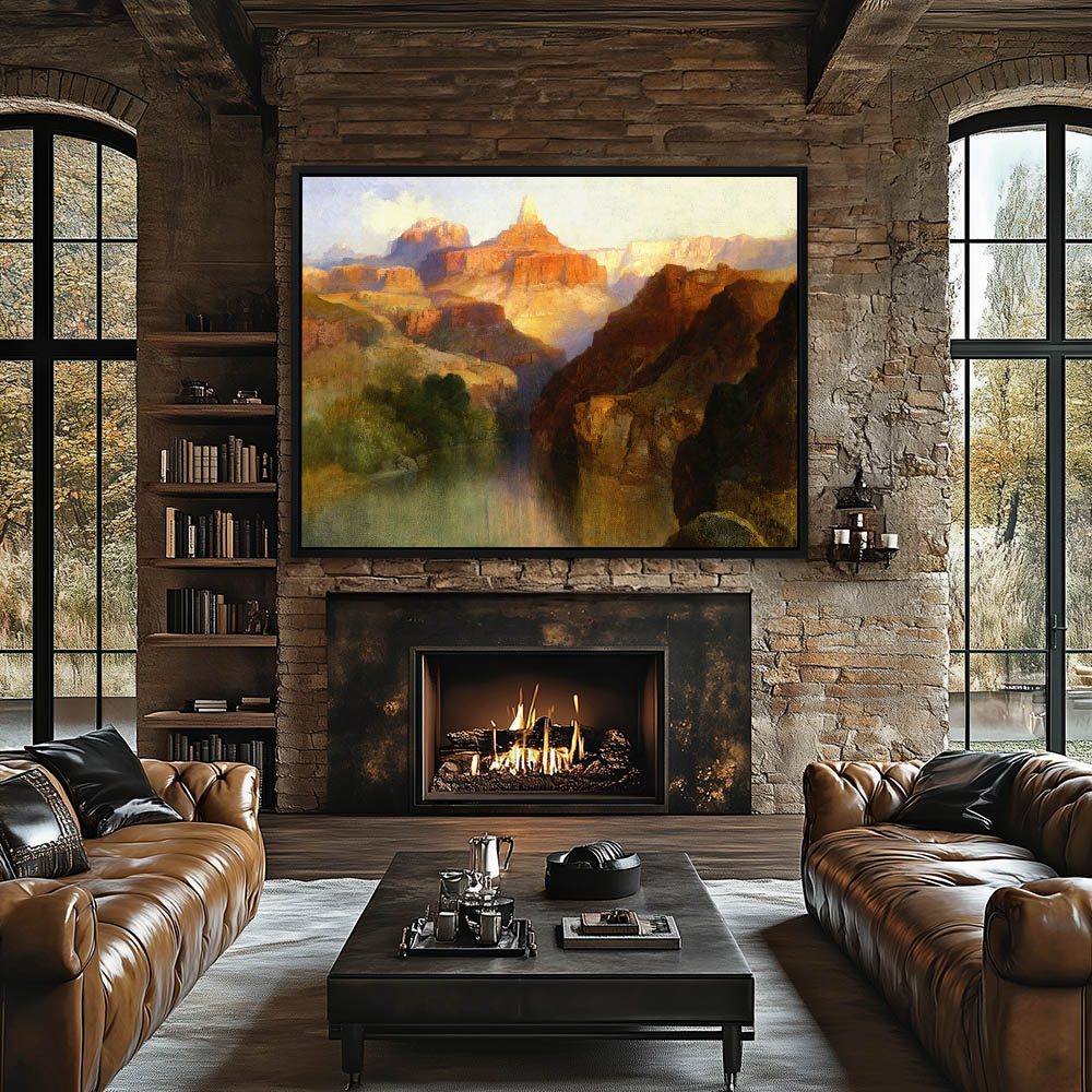 Mountainous landscape with the Grand Canyon and high peak in the distance