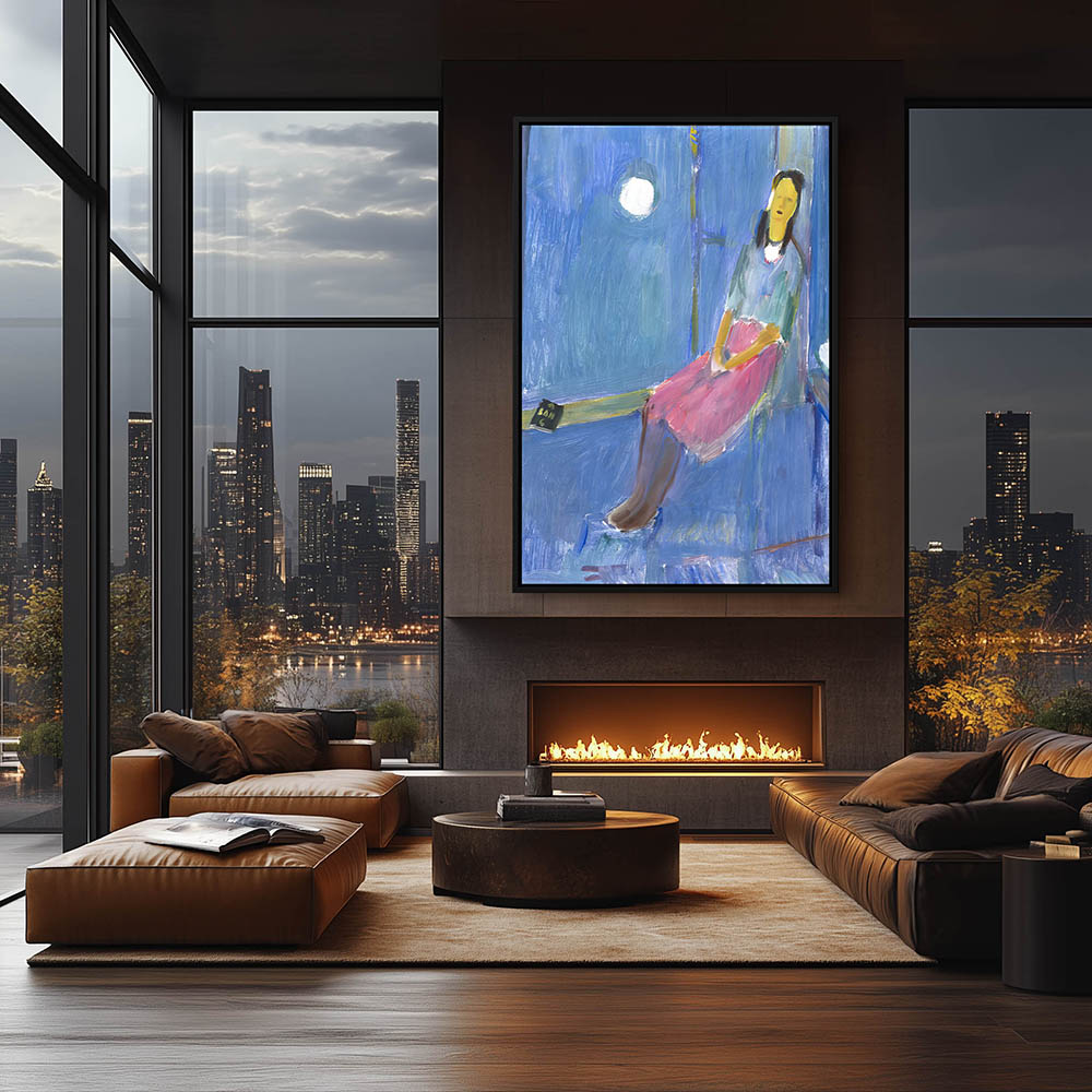 From $29.970 out of 5Vintage Figurative Painting with a Girl Seated on the Porch Under the Moon Light