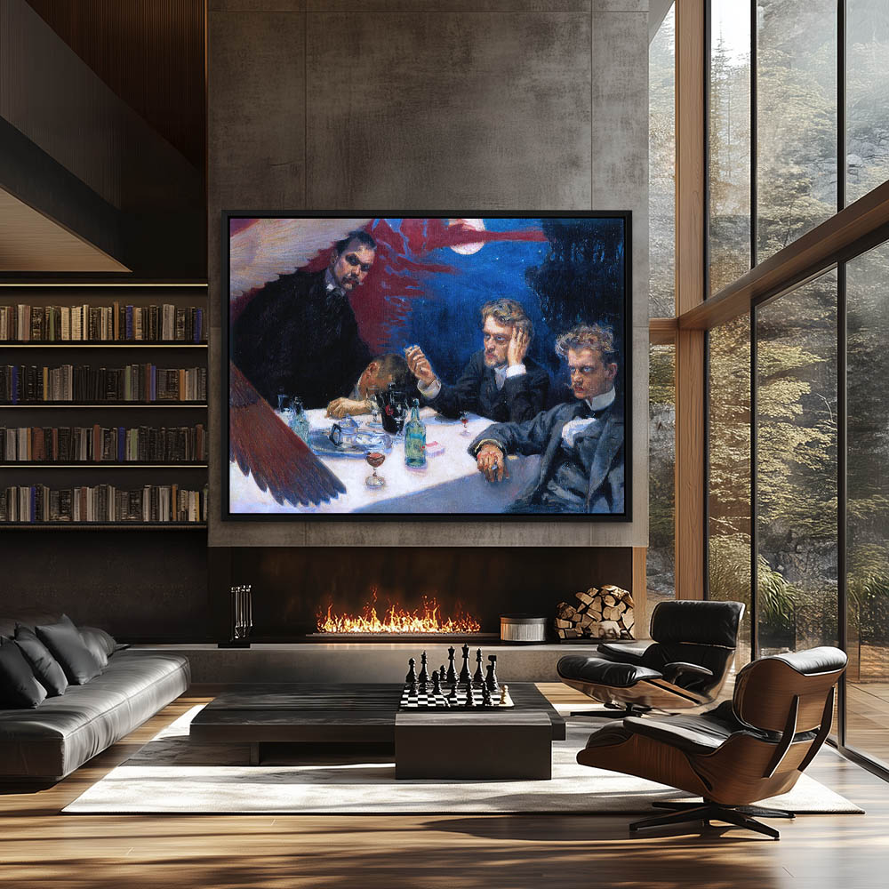 From $29.970 out of 5Figurative Painting with Men Seated at a Table with the Moon Behind them