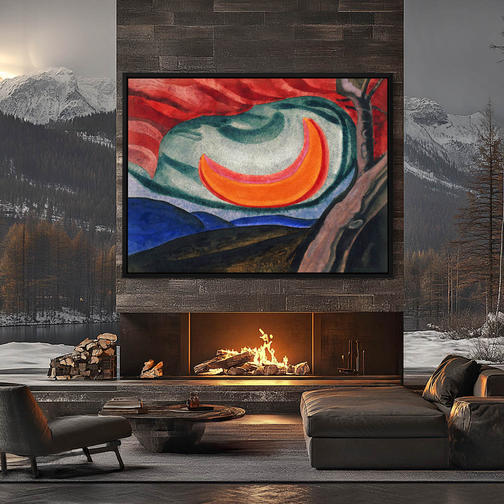 Impressionist Abstract Landscape Painting of Figures Walking under a Cresent Moon