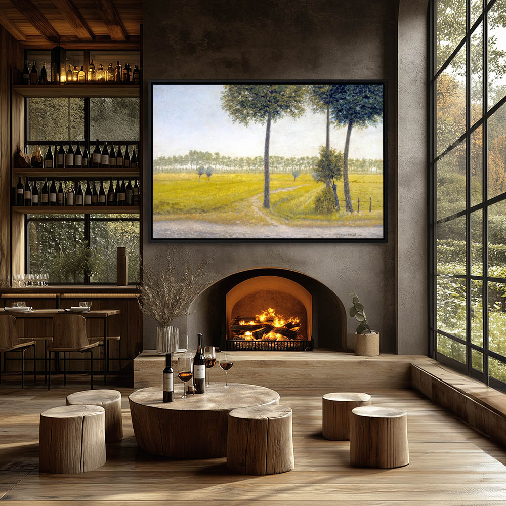 Landscape Painting of a Framhouse and Flowers in Bloom