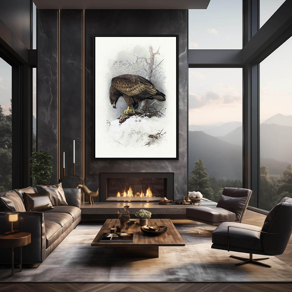 Painting of a Sea Eagle Bird of Prey with His Prey a Rabbit