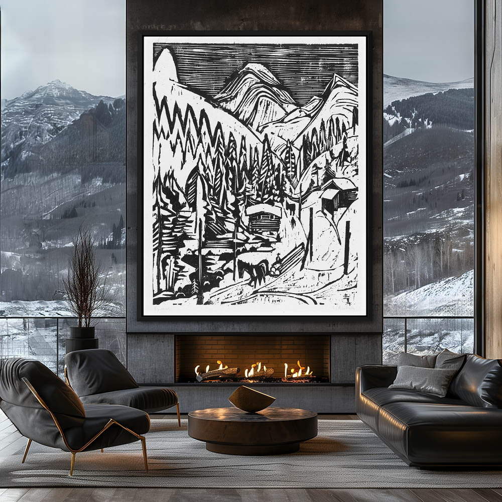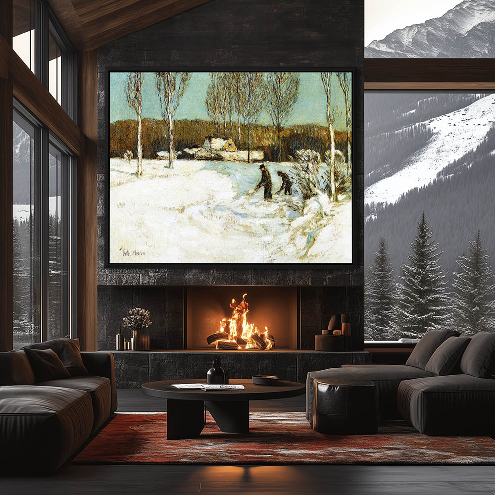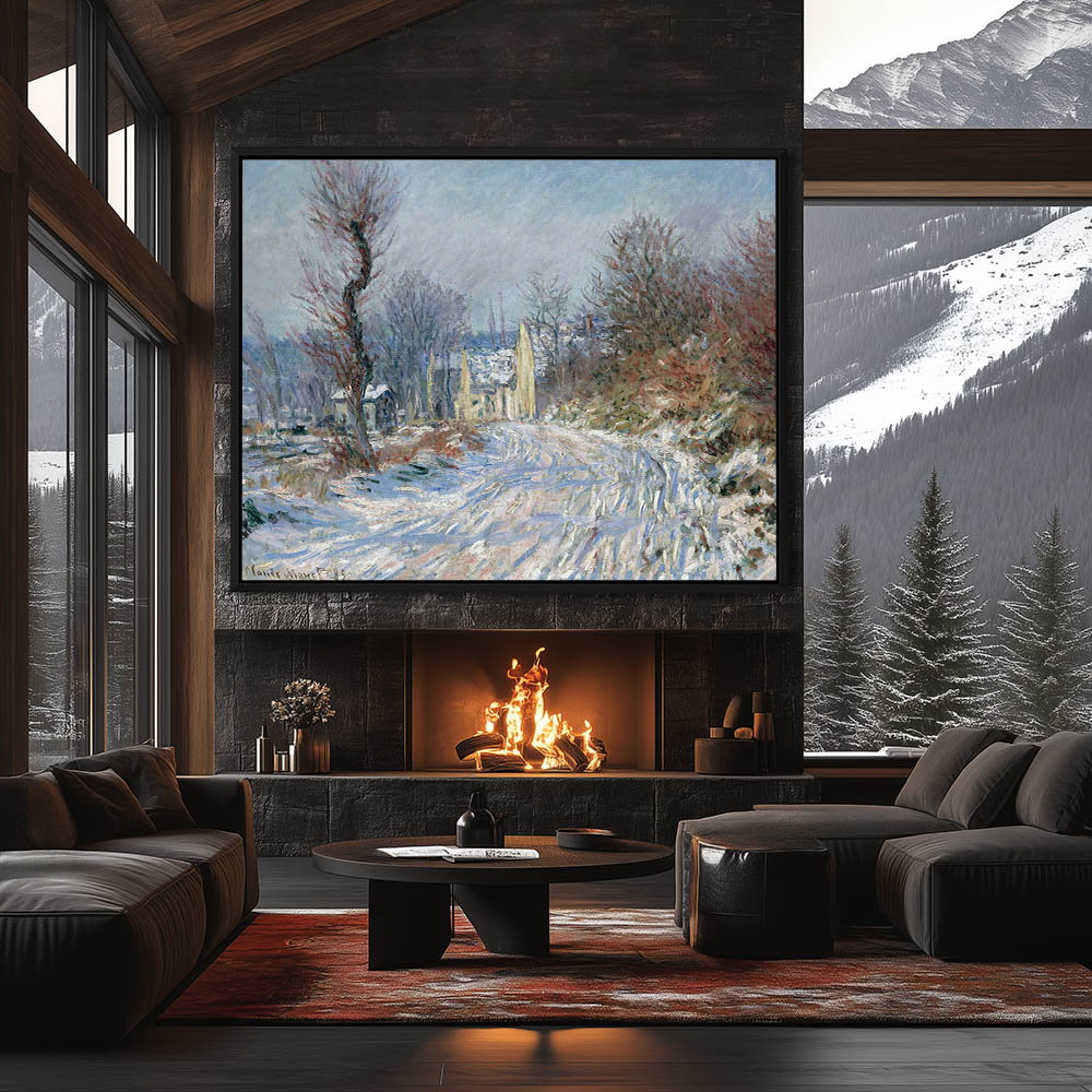 Vintage Landscape Painting of a Road near Giverny under Snow in Winter