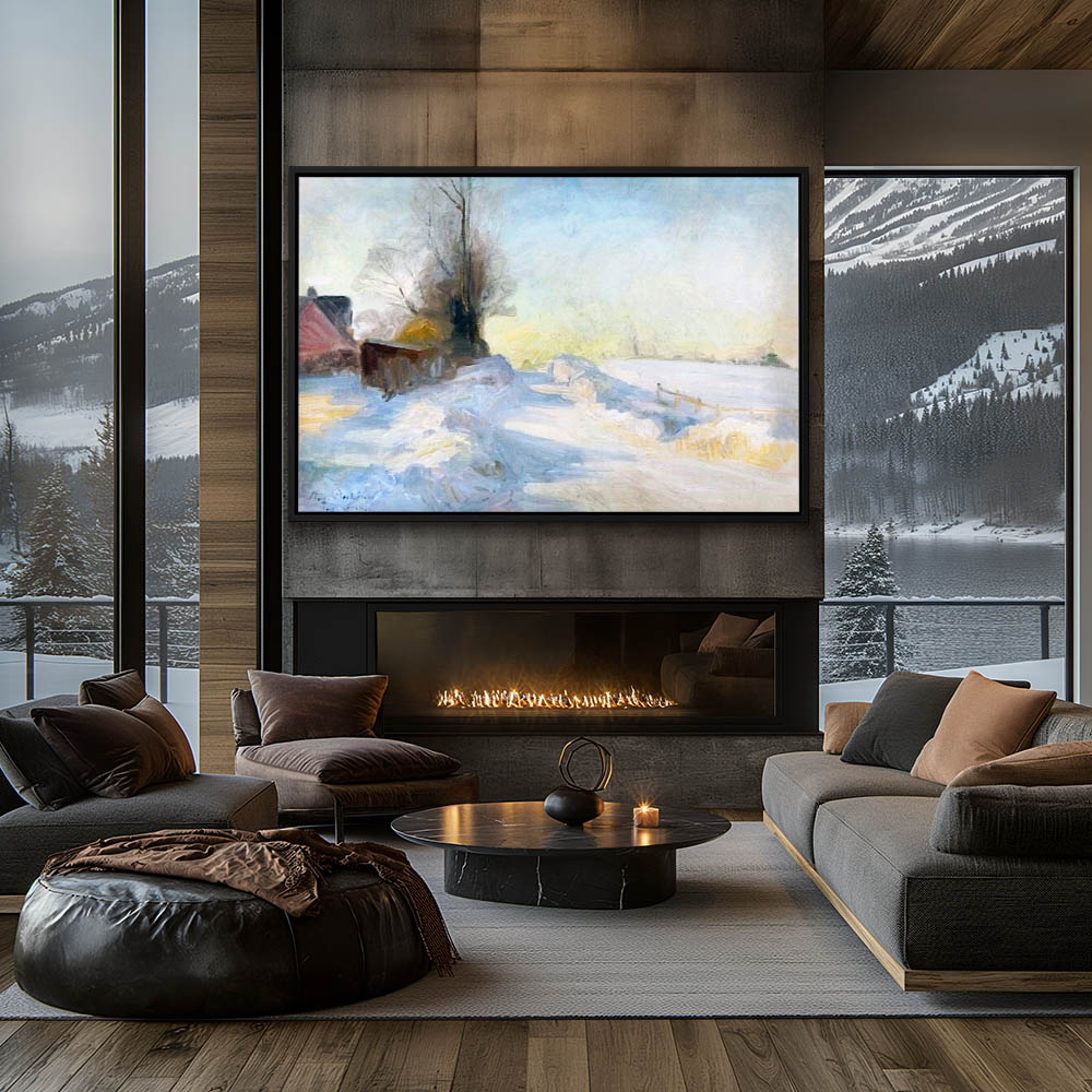 Landscape Painting of Sunshine on the Snow with Trees