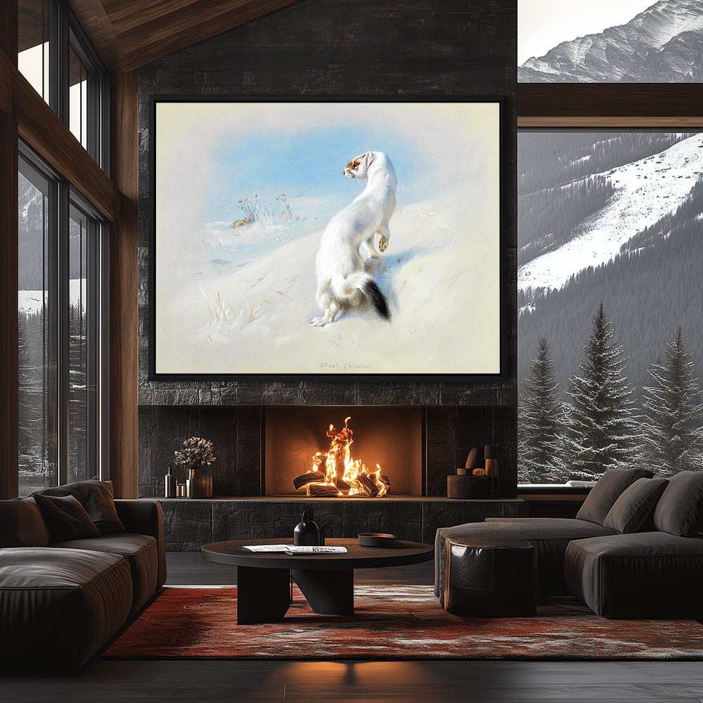 Painting of a Stoat Hunting a Rabbit on the Snow