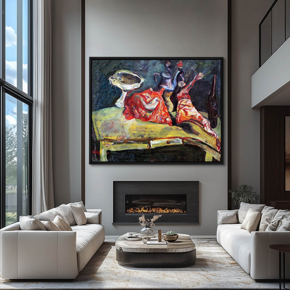 Impressionist Abstract Still Life Painting with a Chair and Pipe