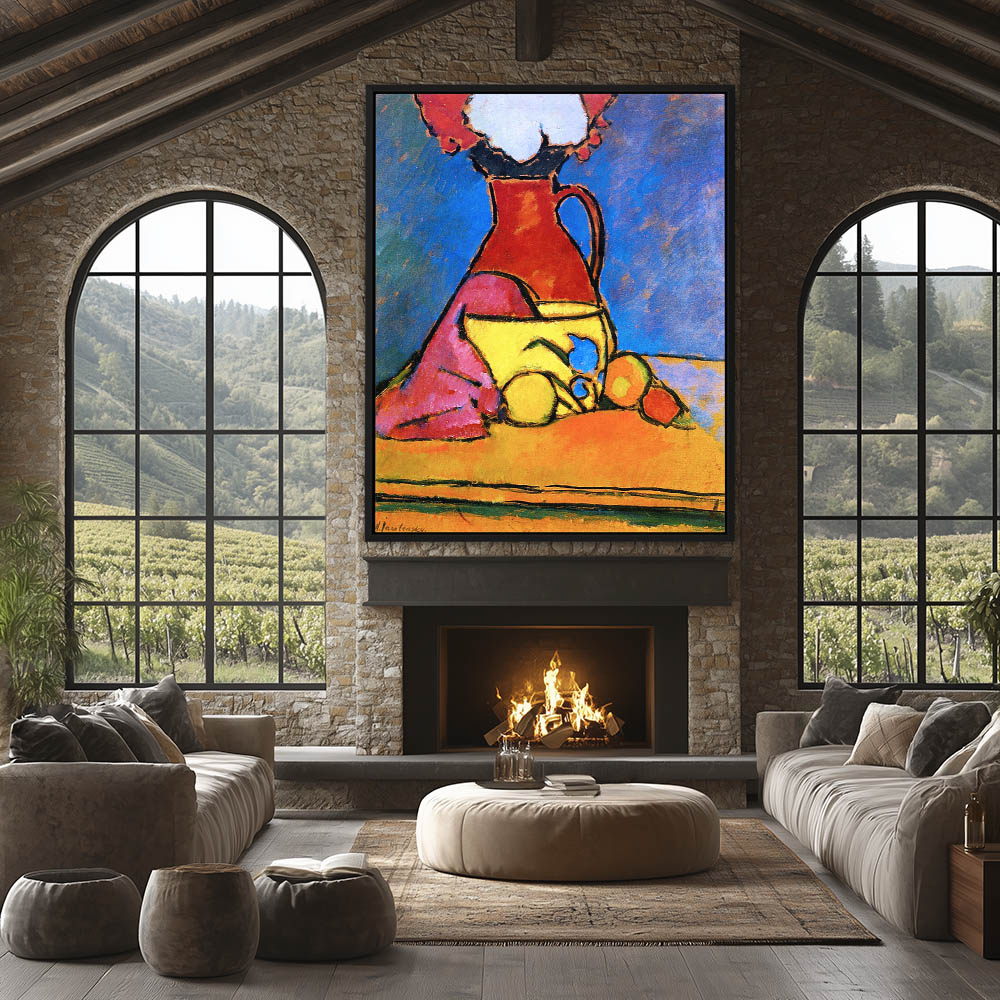 Abstract Still Life Painting with Fruit and Flowers