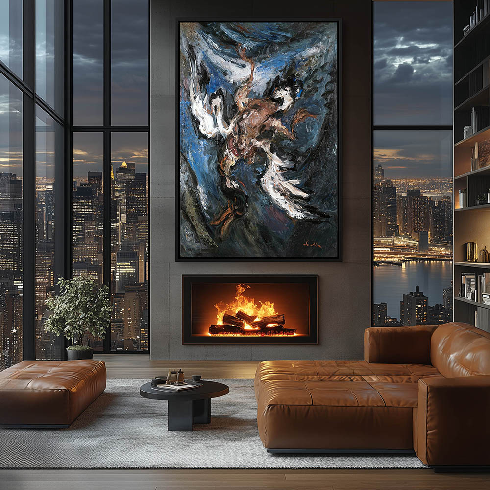 Abstract Still Life Paintin with Two Chickens on a White Cloth