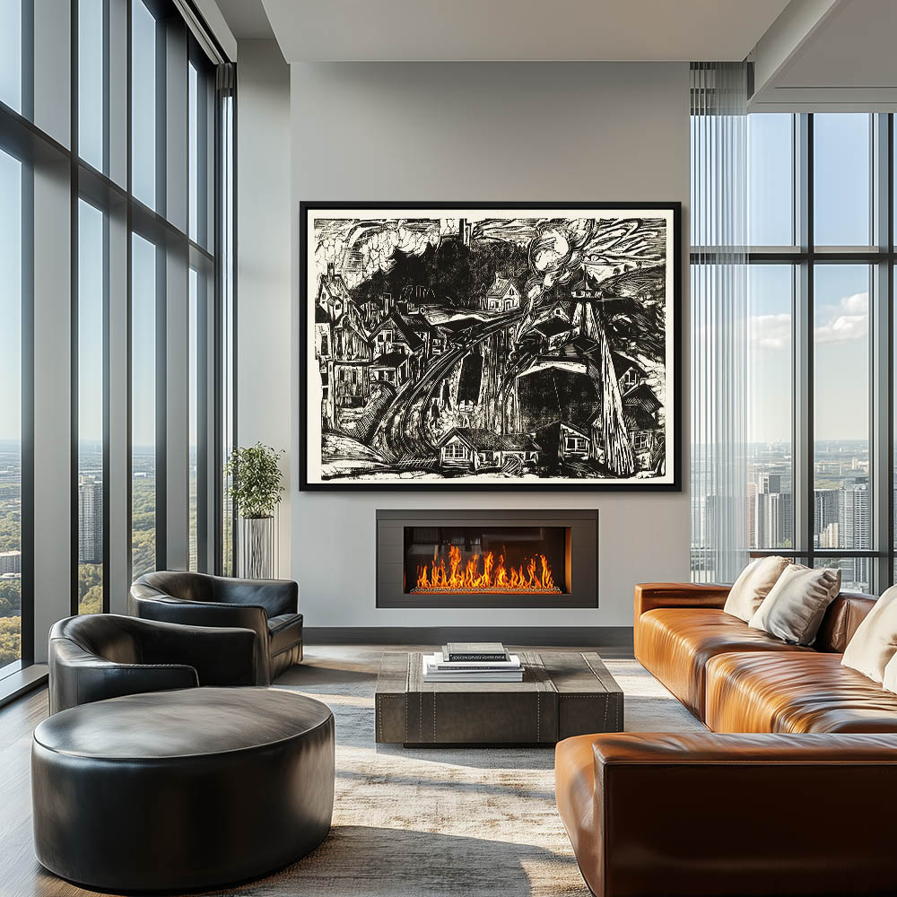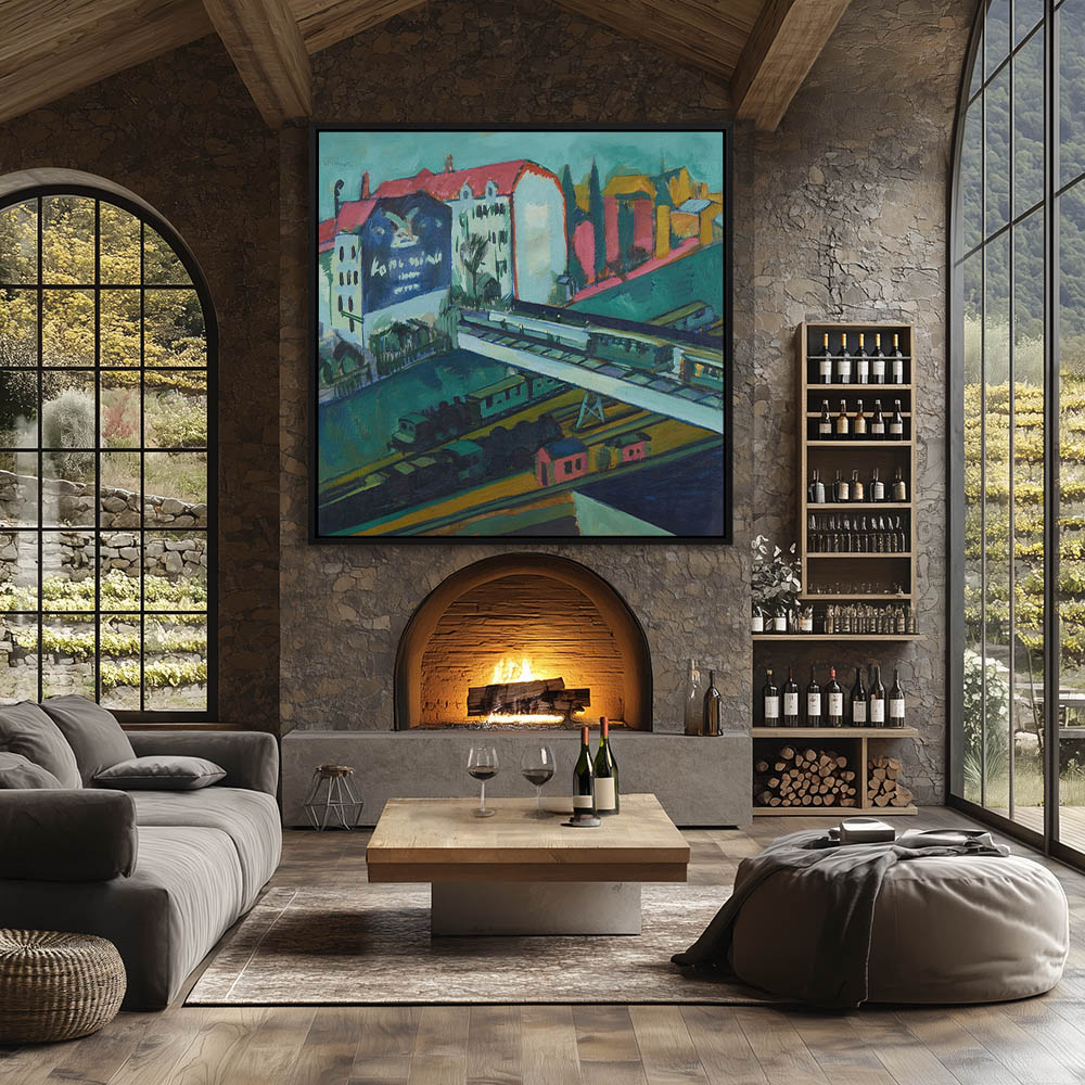 From $31.97Abstract Landscape Painting with a Train on a Bridge