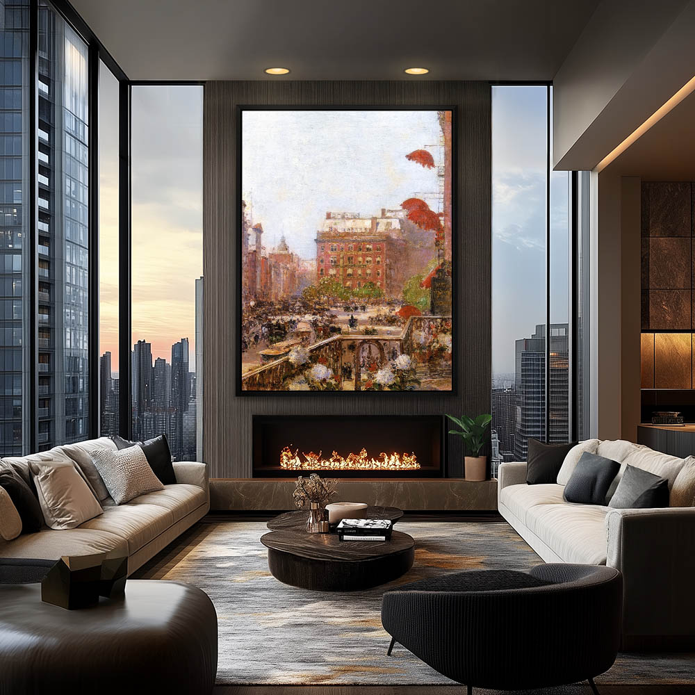 Balcony view of busy New York streets