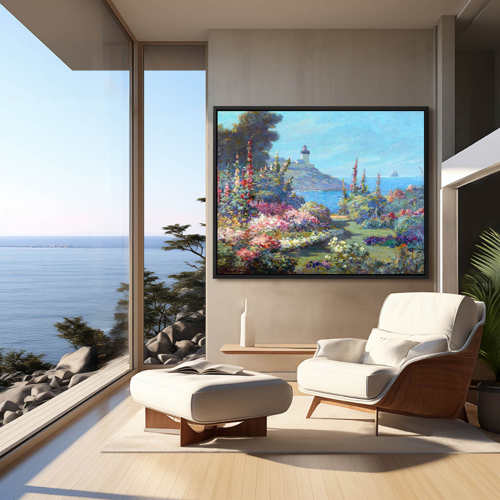 Vintage Coastal Painting of Eastern Point Lighthouse in Finisterre Gloucester Maine