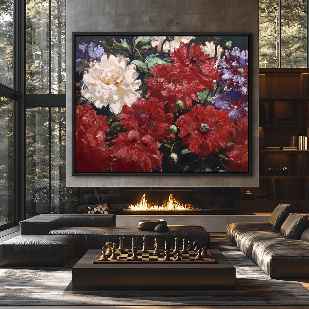 Still Life Flower Painting with Chrysanthemums in a Basket