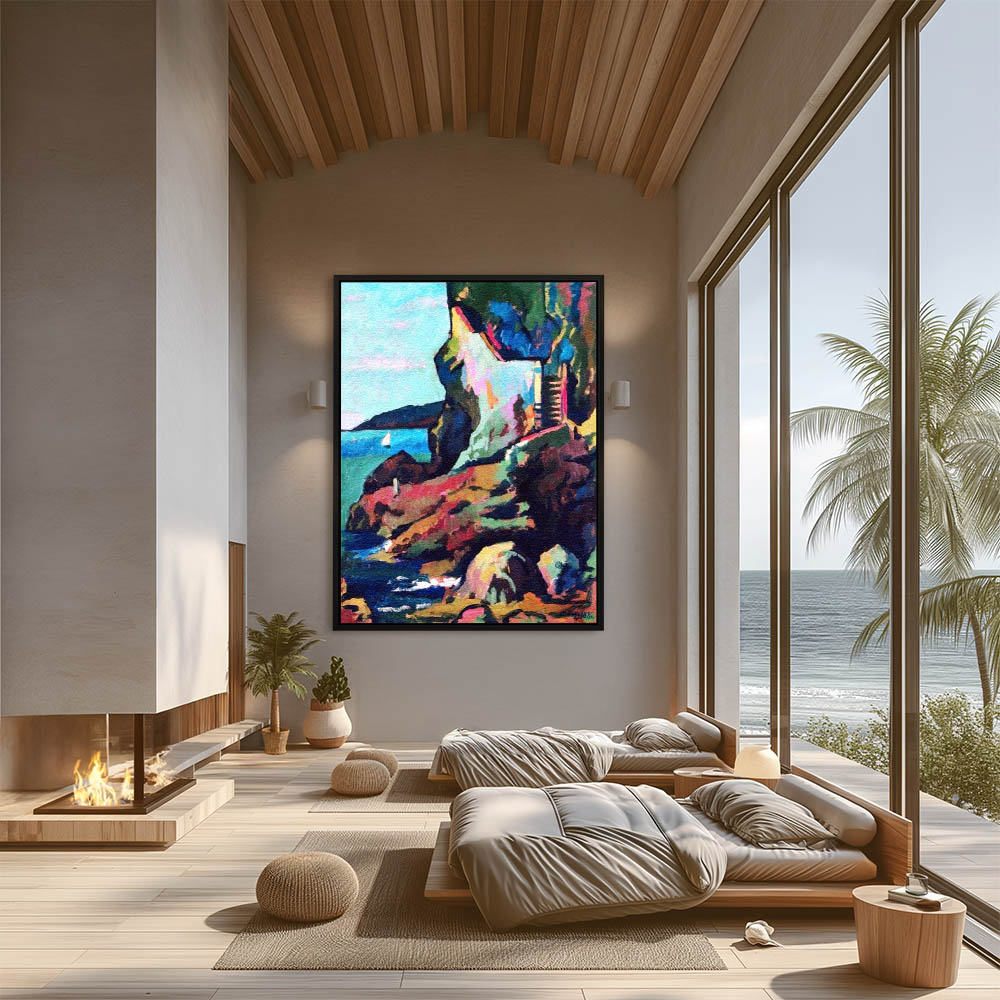 From $29.97Abstract Coastal Sea Scape Painting with Stairs and Cliffs and Sailboat