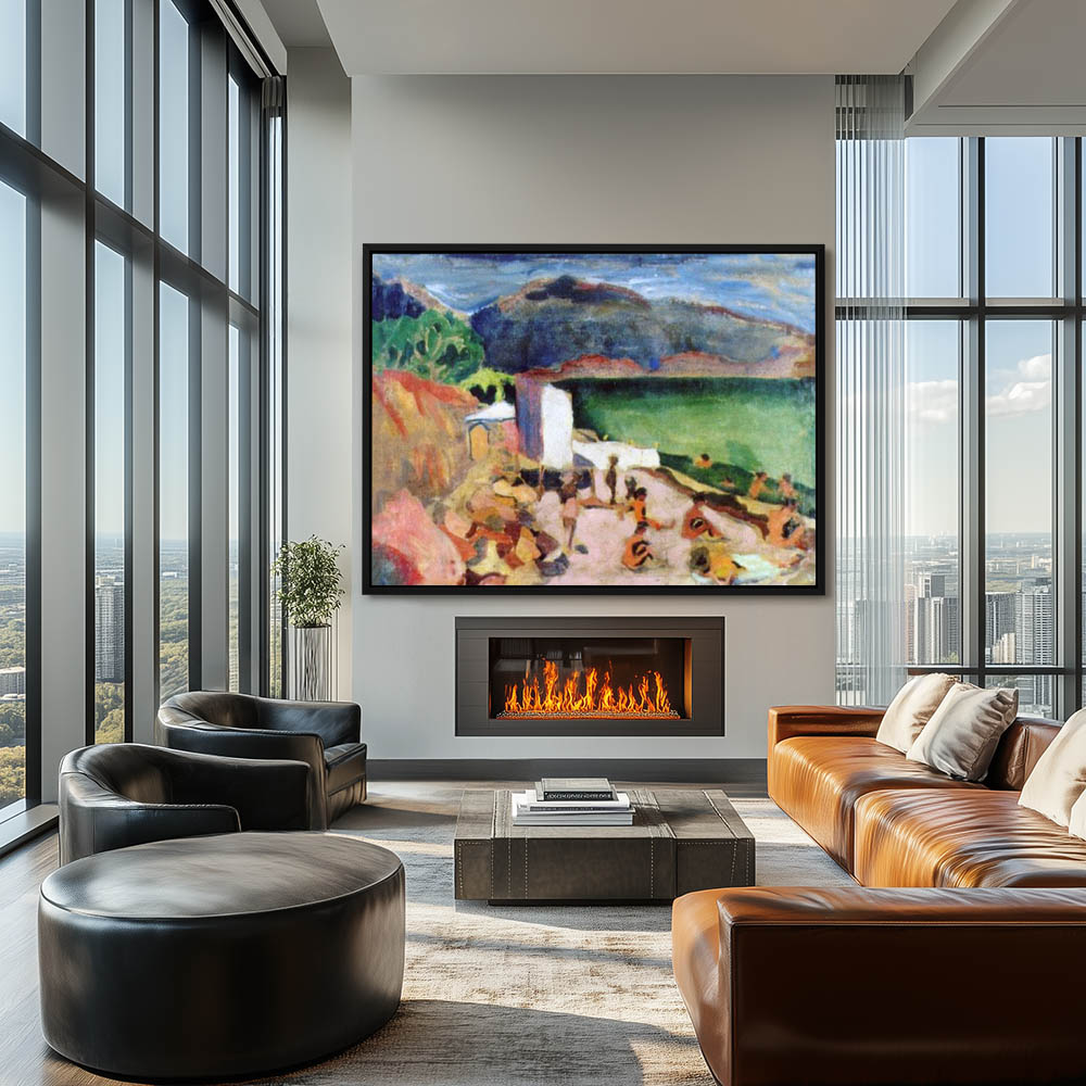 Abstract Coastal Painting with Figures on the Beach