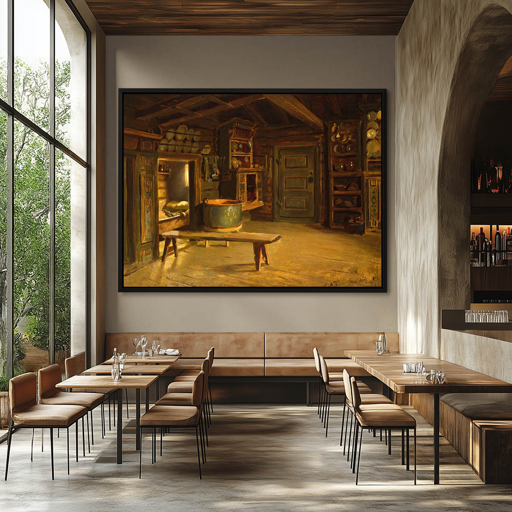 A Hardanger Interior, Young Girl Knitting