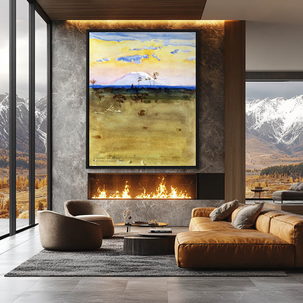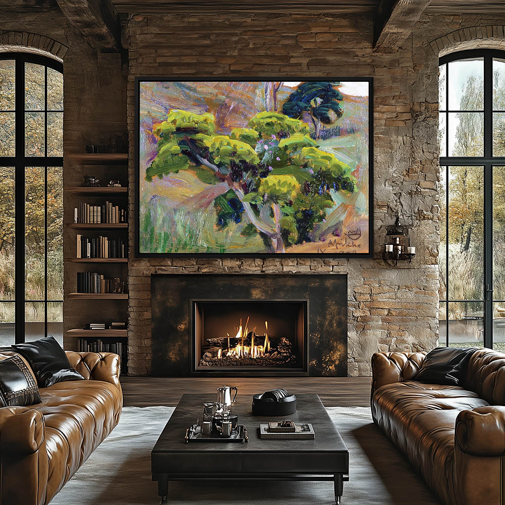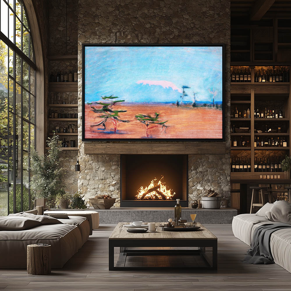 Abstract Landscape Painting with an African Dwarf Tree in the Desert
