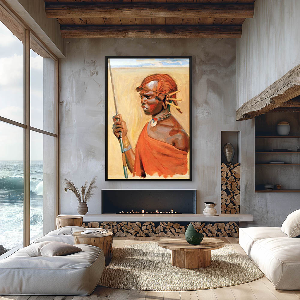 Abstract Figurative Painting of an African Kikuyu in Papyrus Reeds