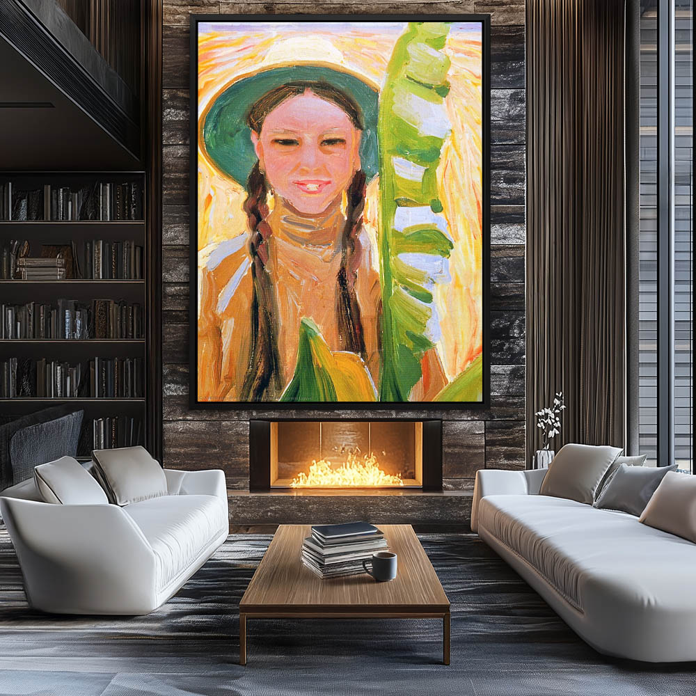 Figurative Portrait Painting of Kristi by Banana Leaves in Africa