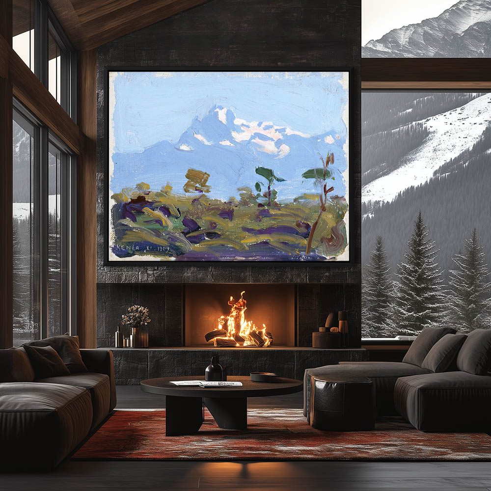 Landscape Painting of Mt Kenya with Snow Topped Mountains in the Distance